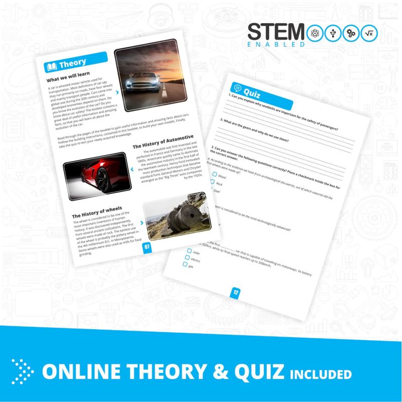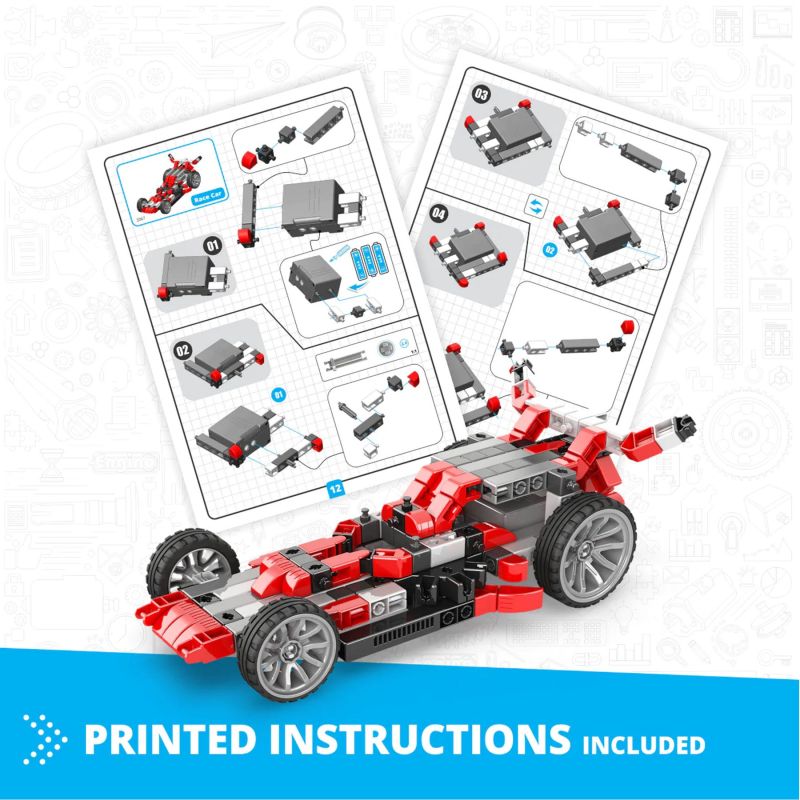 Младите автомобилни инженери ще изучават ключови принципи на STEM (наука, технологии, инженерство и математика), докато запълват детския си гараж Engino с до 10 свръхмощни автомобила, които ще трябва да конструират от нулата! Този мултимоделен комплект за творчески конструктори, с 10 модела, включва печатни и онлайн инструкции за построяване на: кабриолет купе, състезателна кола от Формула 1, нитро, скутер, триколка и още!