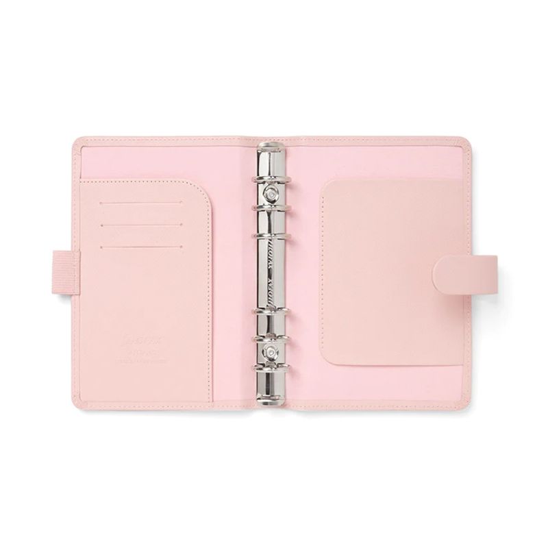 Вътрешната страна на лявата корица разполага с джоб за бележки, три джоба за карти и еластичен държач за химикалка.