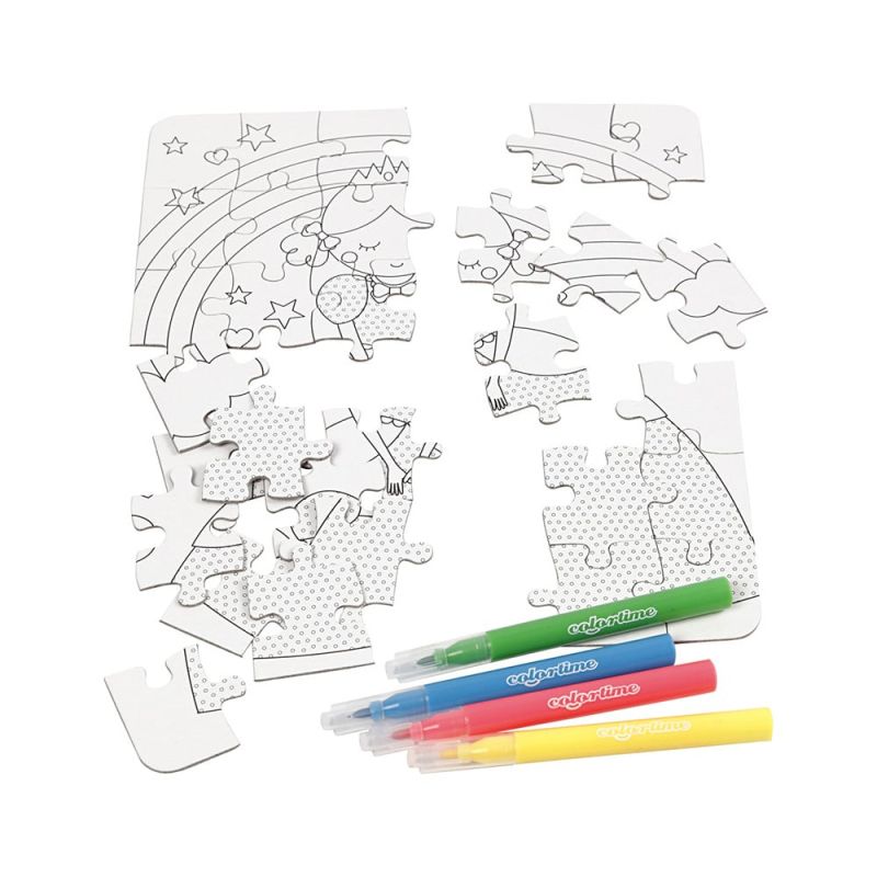 Пъзел от картон с предварително отпечатани мотиви за оцветяване с маркери.