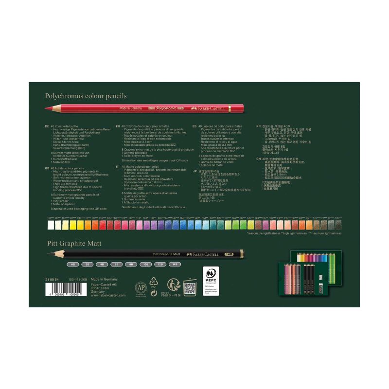 Faber-Castell Цветни моливи Polychromos, 40 цвята и чернографитни моливи Pitt Graphite Matt, 8 броя, в кутия