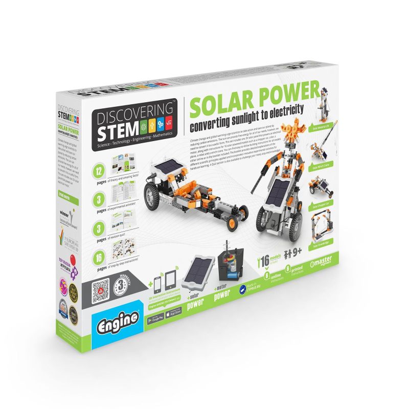 Комбинирайте две модерни технологични предимства, за да създадете невероятен соларен робот. Научете как да преобразувате слънчевата енергия в електричество. Продуктът е подходящ за деца над 9-годишна възраст.