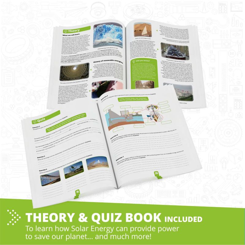 Този комплект включва един 3V соларен панел, който захранва електрически мотор, заедно с инструкции за 16 модела, захранвани със слънчева енергия като хеликоптер, вентилатор, самолет, робот и кран с лебедка.
