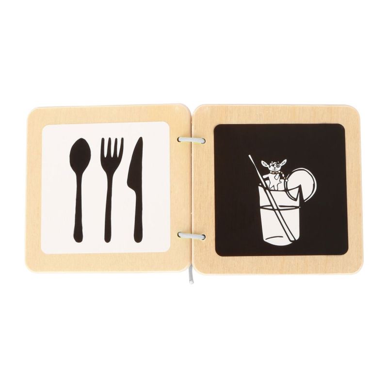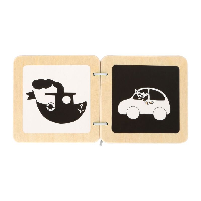 Тази дървена книга подпомага малките деца по време на първите им сетивни възприятия, въз основа на елементите, които бебетата могат да наблюдават.