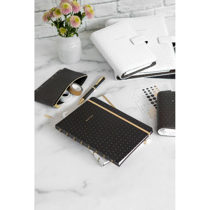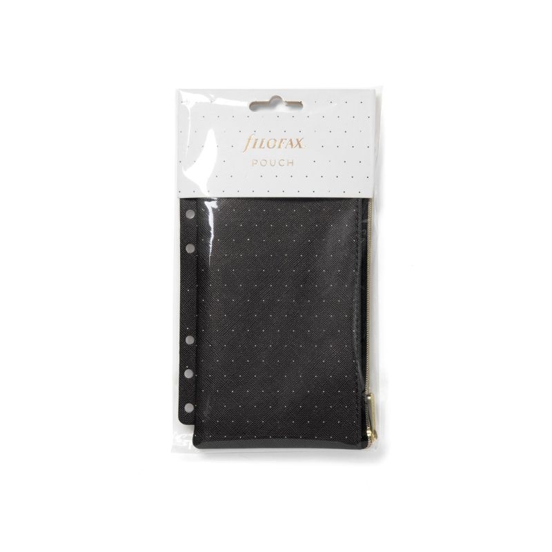 Стилен несесер с цип в черни и златни мотиви, част от колекцията Moonlight на марката Filofax.