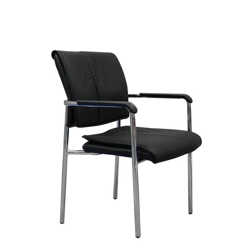 Посетителски стол RFG Flash M, екокожа, метална основа, до 120 kg, черен, 4 броя в комплект
