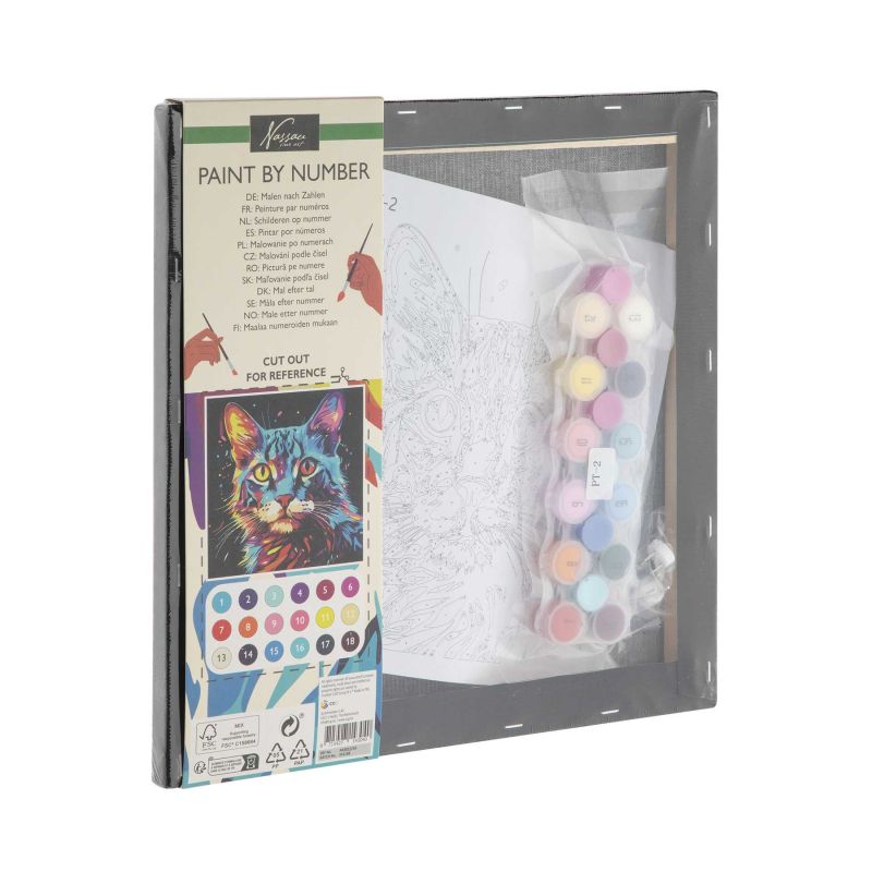- платно за оцветяване по номера с изображение на коте, размери: 30 х 30 cm;