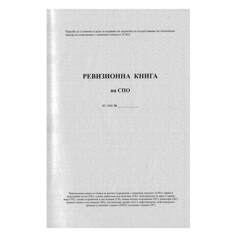 Ревизионна книга за поднадзорни обекти, с твърда подвързия, 100 листа