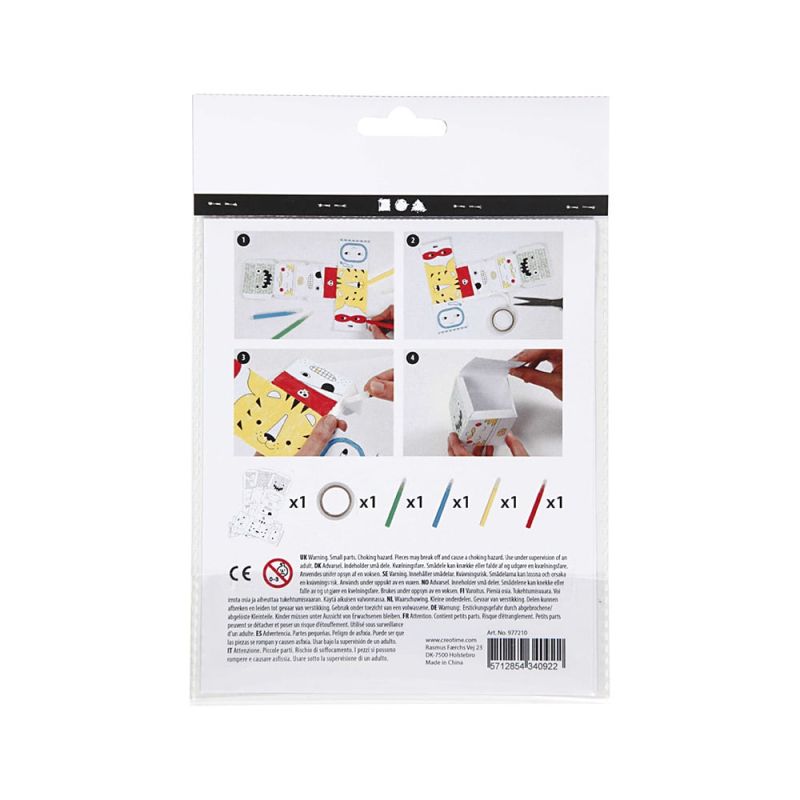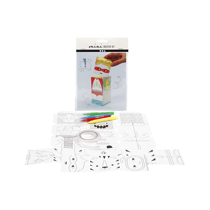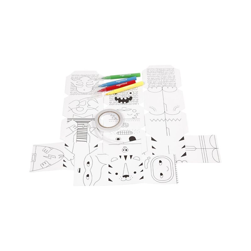 Комплект за направата на чудовища и роботи от дебел картон с предварително отпечатани мотиви за оцветяване с маркери.