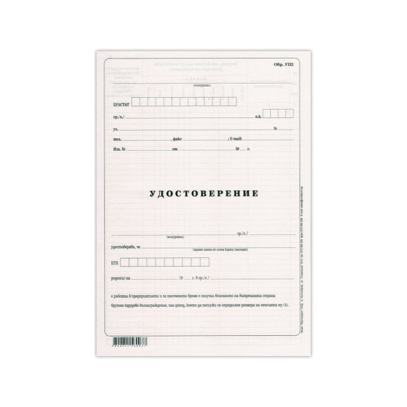 Удостоверение за осигурителен доход УП-2, 50 броя
