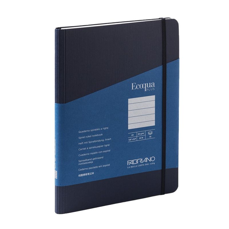 Fabriano Тетрадка Ecoqua+, A5, картонена корица, със скрита спирала, 70 листа, тъмносиня
