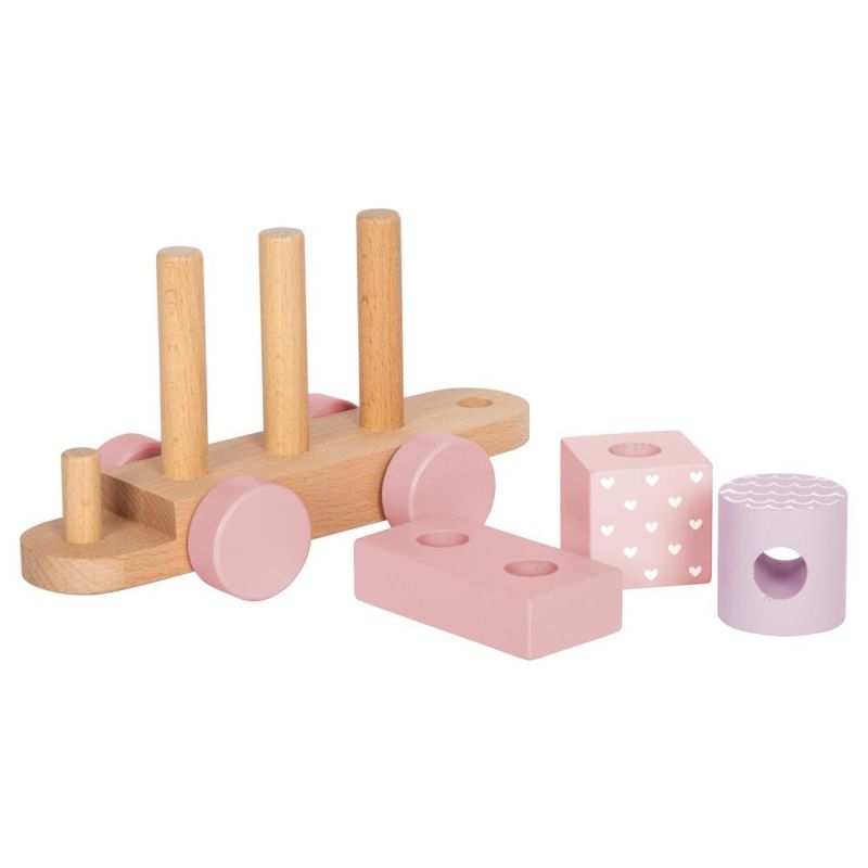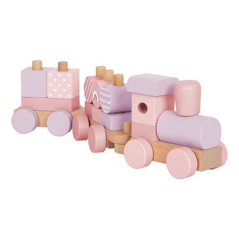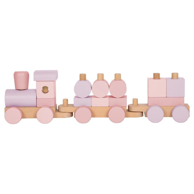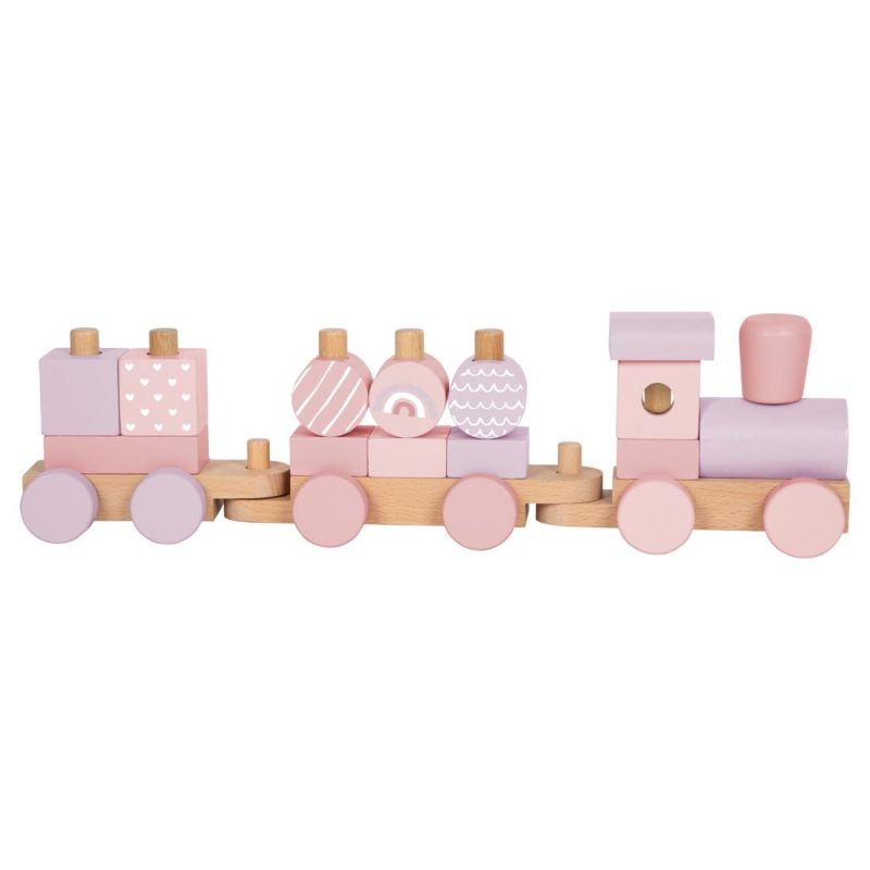 Small Foot Влак 2 в 1, дървен, 14 части, пастелнорозов