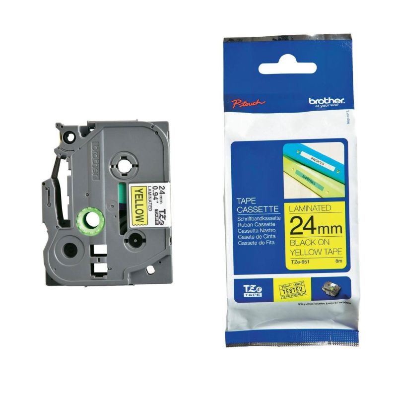 Лента Brother TZe-651, 24 mm x 8 m, черен печат върху жълта лента