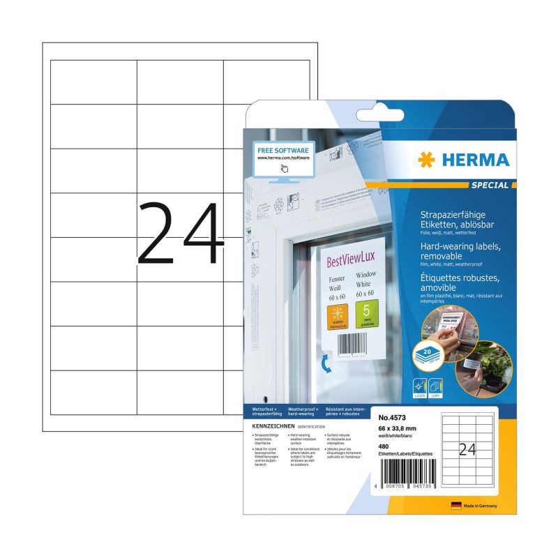 Herma Самозалепващи се етикети от бяло матово фолио.