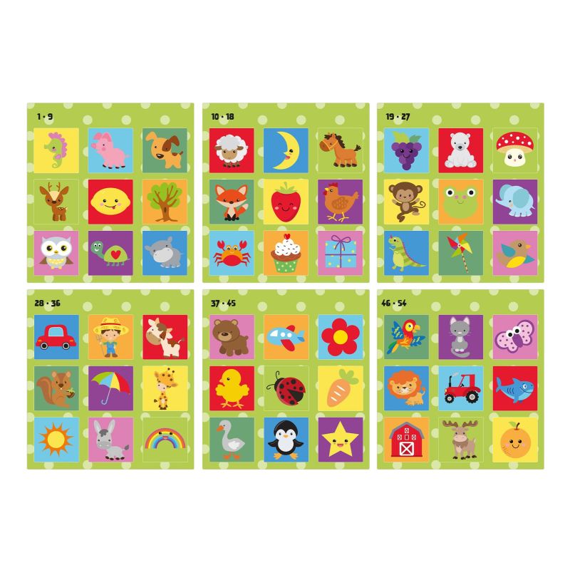 Играта включва 6 карти за отбелязване и 54 картинки.
