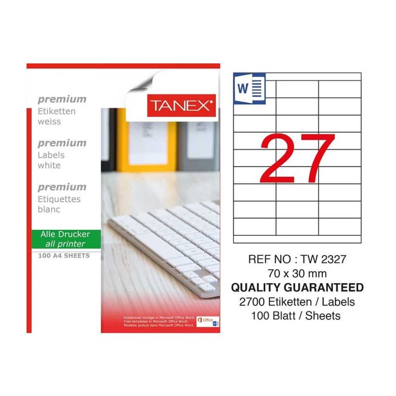 Tanex Самозалепващи се етикети, A4, 70 х 30 mm, 27 броя, 100 листа