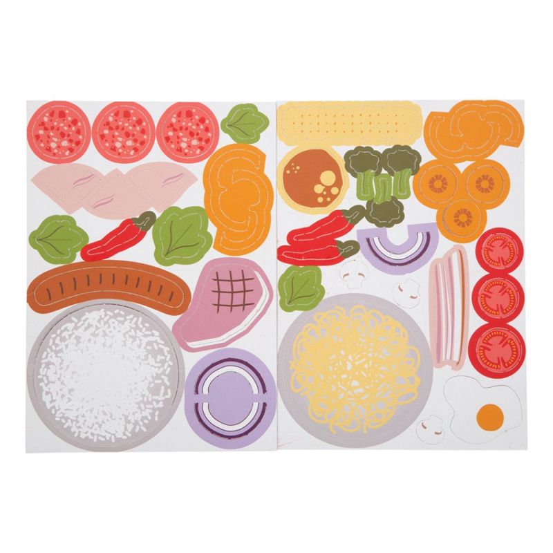 Включва 2 картонени листа за изрязване с храна и съставки.