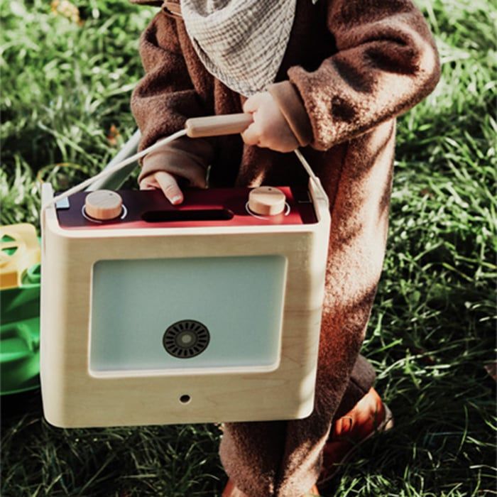 Модерните цветове, съчетани с естествено огънато дърво, правят тази кухня за игра атрактивна и приятна за игра.