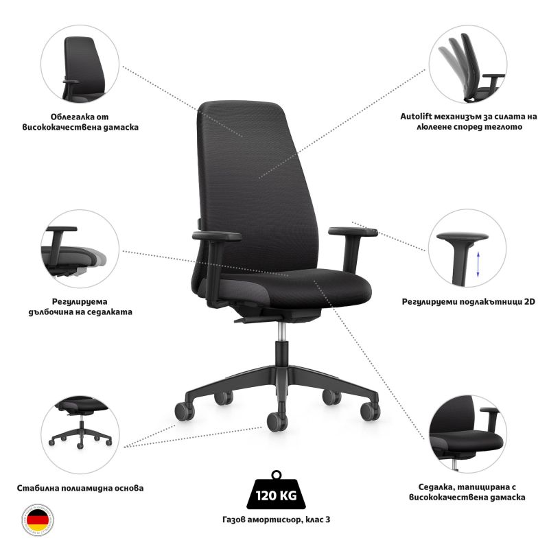Ергономичен стол Interstuhl Every EV157, текстил, Autolift механизъм, полиамидна основа, черен