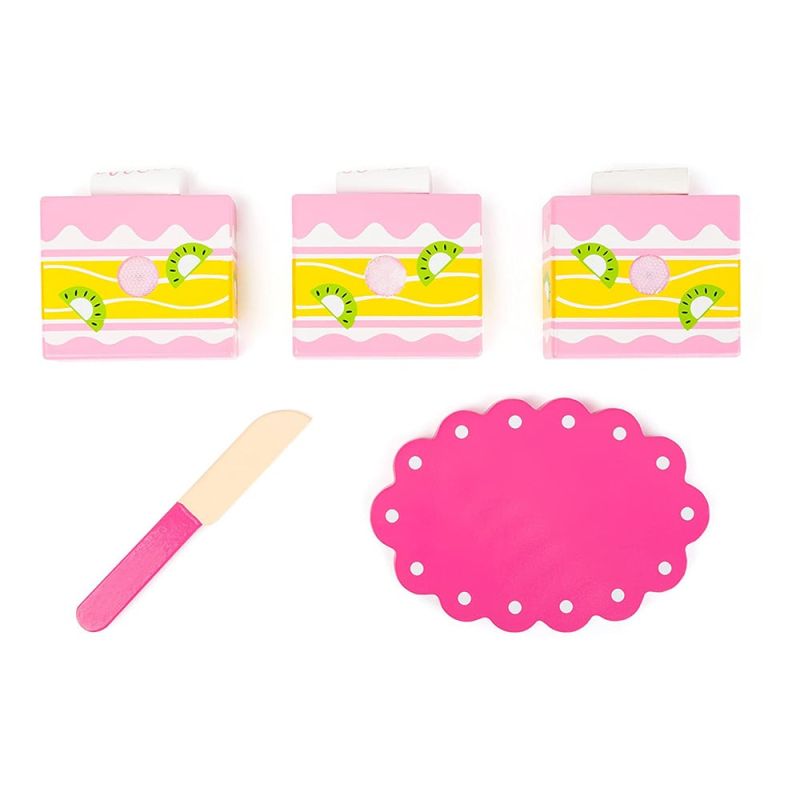 Вкусното парченце торта върви перфектно с кафето на всяко дете. Дървената розова торта се състои от три отделни парчета, свързани с велкро закопчалки, така че изрязването става изключително лесно. Никой не може да устои на парче от тази вкусна торта!