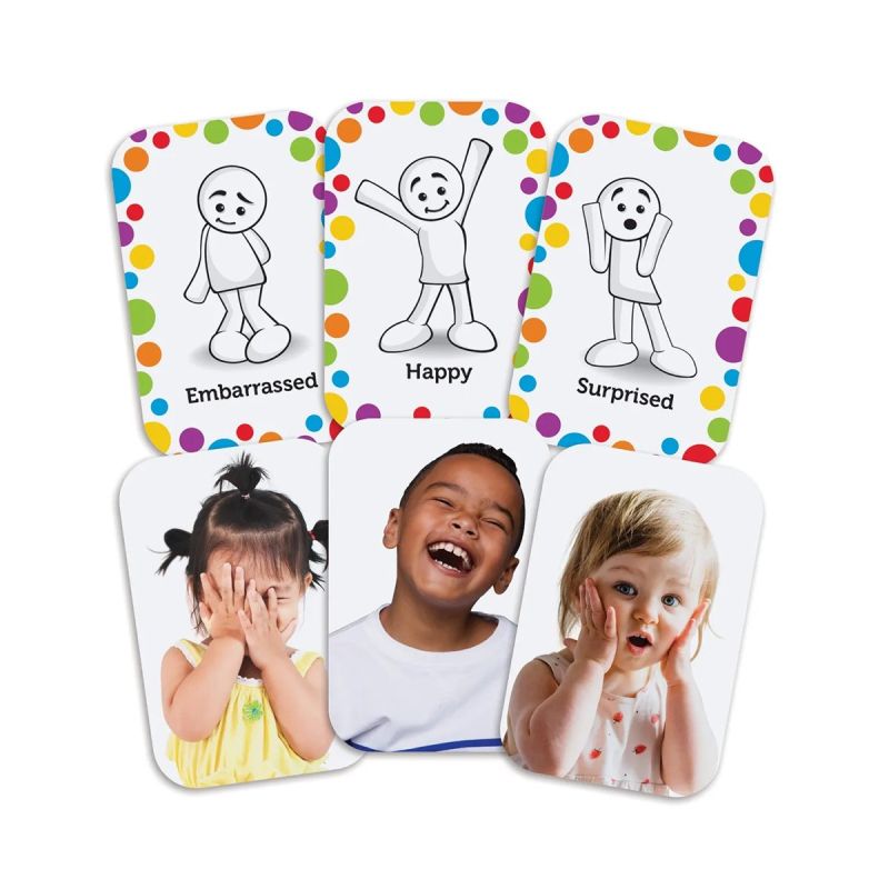 Благодарение на тези 6 забавни лица и форми, заниманията в този комплект ще помогнат на малките деца да научат нови познания относно лицевите изражения и езикът на тялото, както и какво показват те.