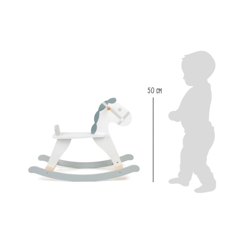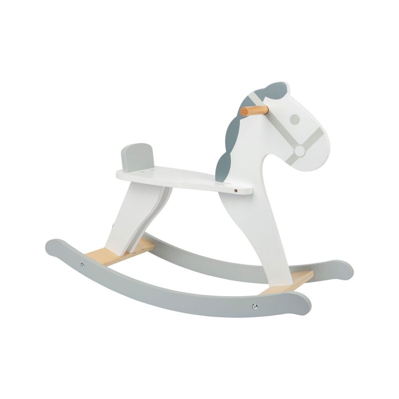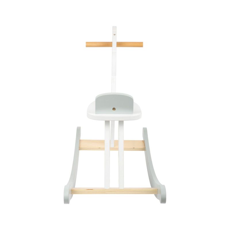 Люлеещото се конче е в модерен, скандинавски стил и завладява децата със своя фин сиво-бял дизайн. Кончето кани децата на забавна разходка, като също така е и красива декорация за детската стая. Люлеенето, облегалката и удобните дръжки осигуряват стабилно задържане на седлото. Изработено от масивно дърво, люлеещото се конче предлага забавни разходки през детската стая.
