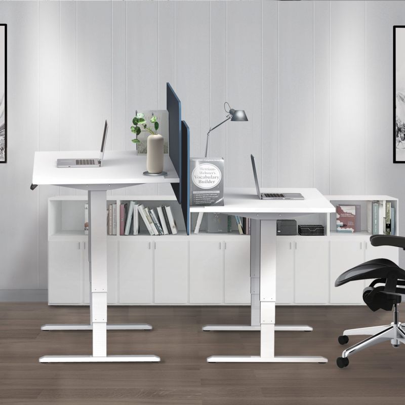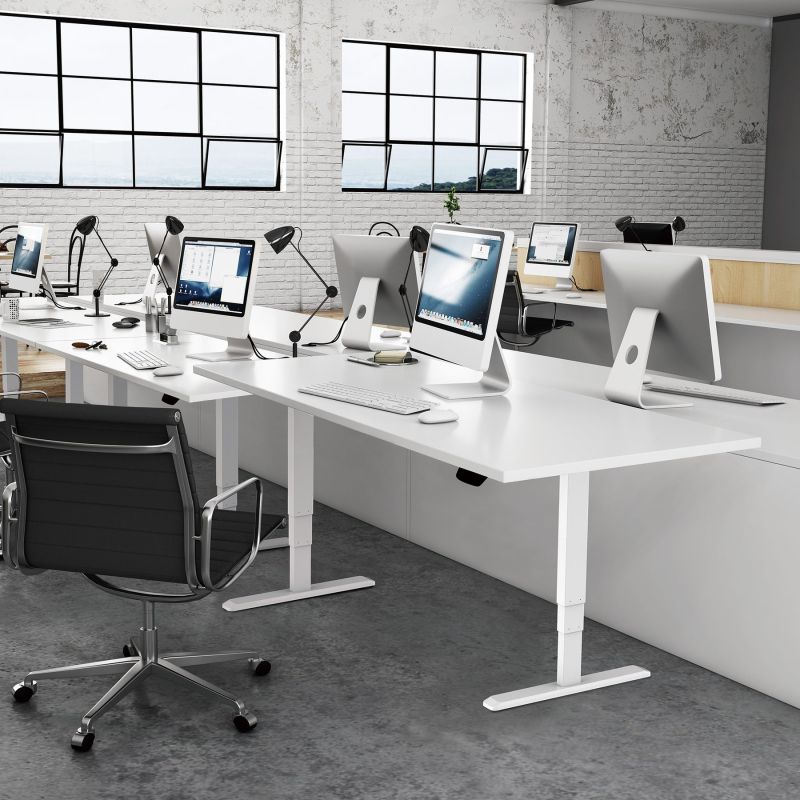 Ергономично eлектрическо бюро с регулируема височина RFG, 160 x 80 cm, ПДЧ 25 mm, бял плот, бели метални крака
