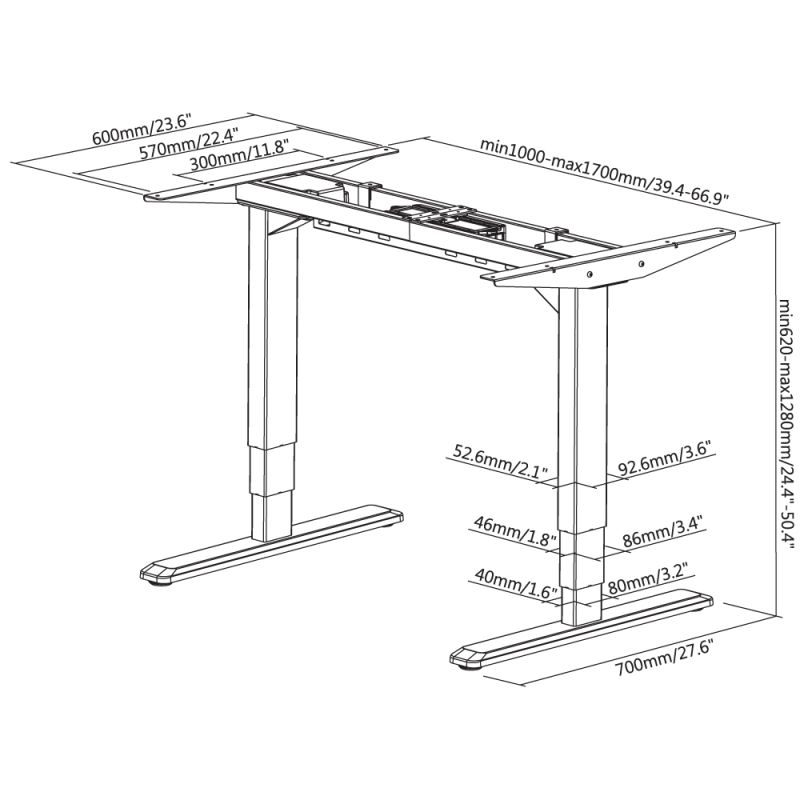 Характеристики: Размери на работния плот: 1600 x 800 mm.