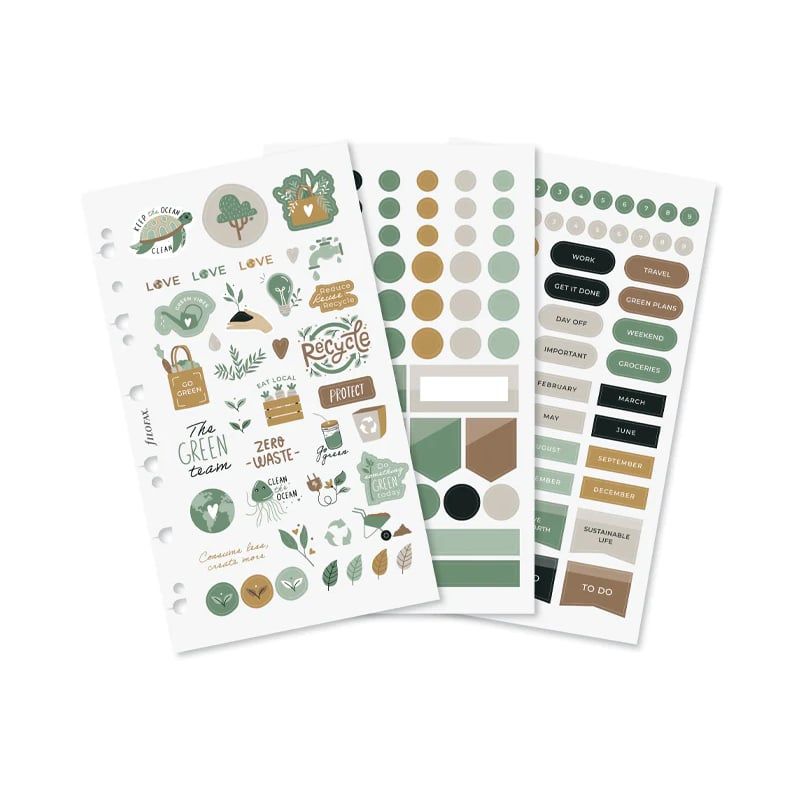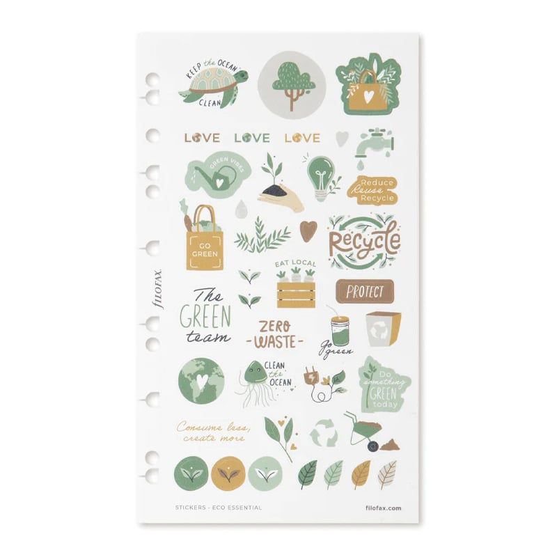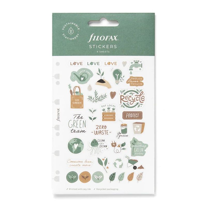 Комплектът включва 6 листа с общо 140 стикера с различни дизайни от колекцията Eco на марката Filofax.