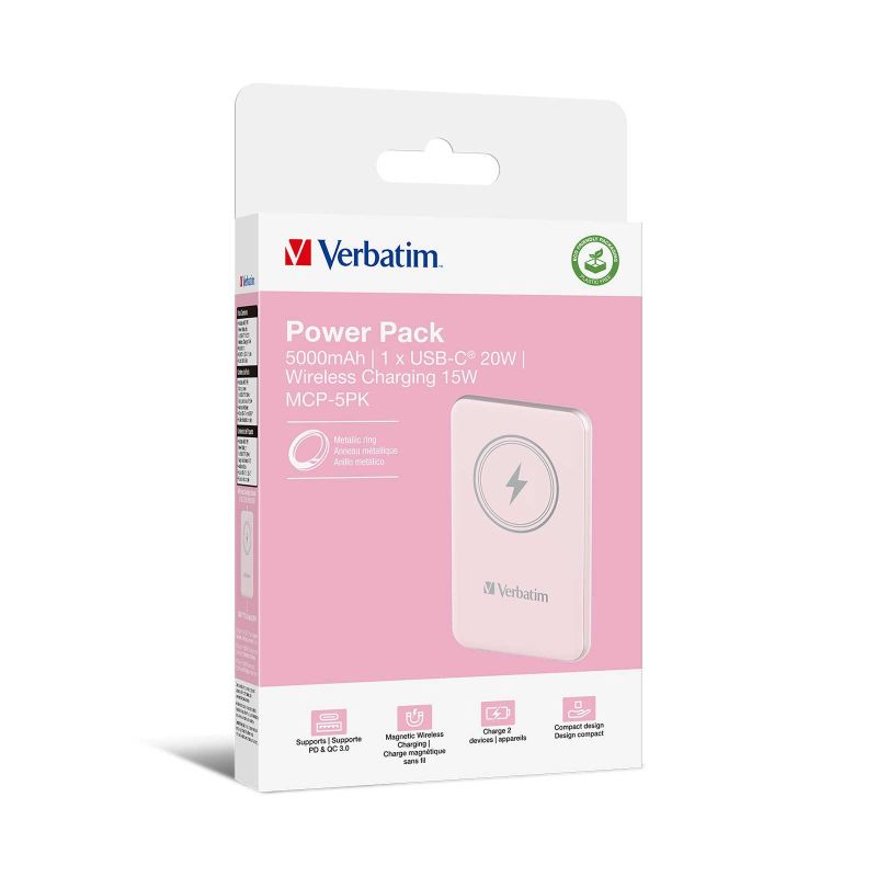 Външна батерия Verbatim Charge 'n' Go, магнитна, 5000 mAh, USB Type-C, розова