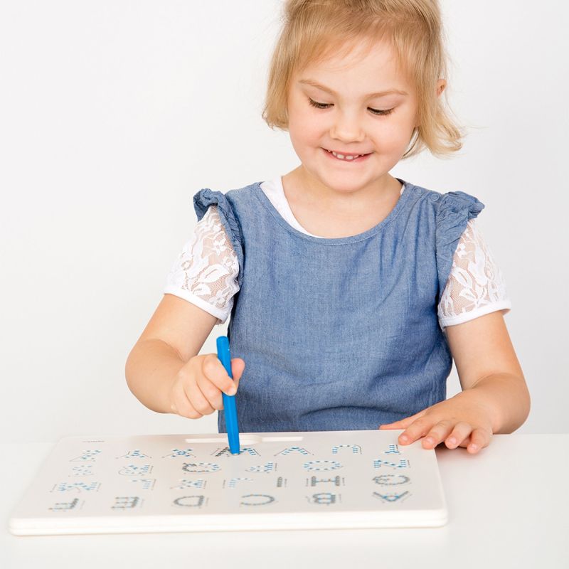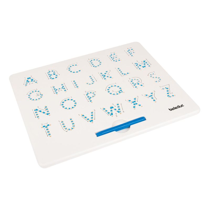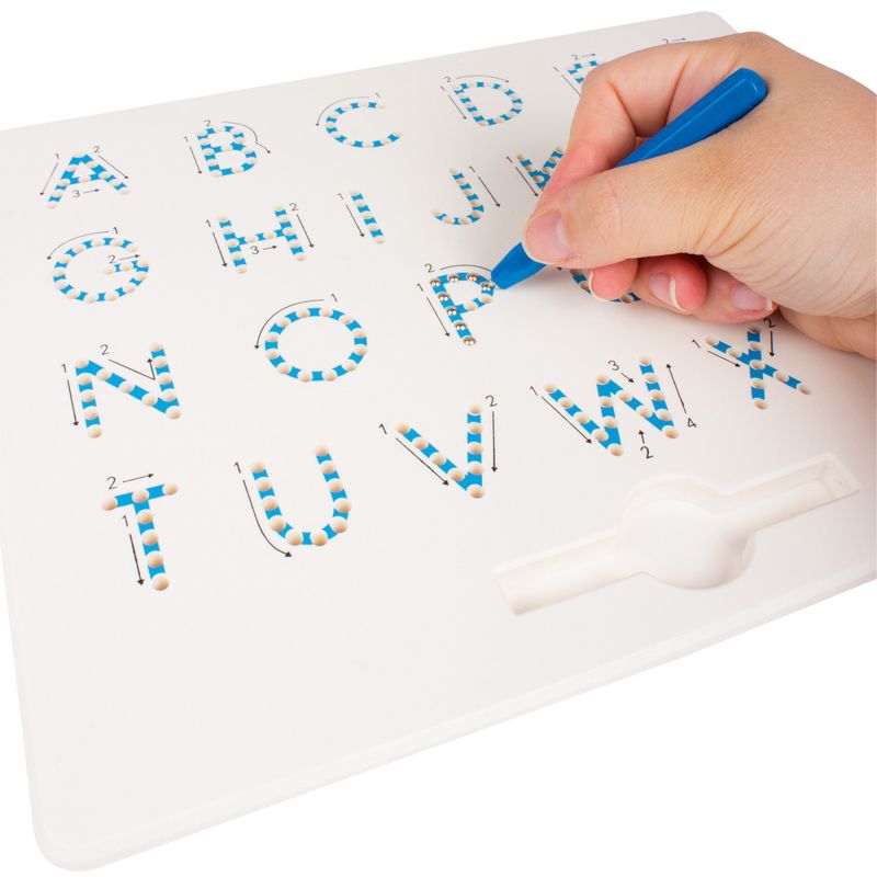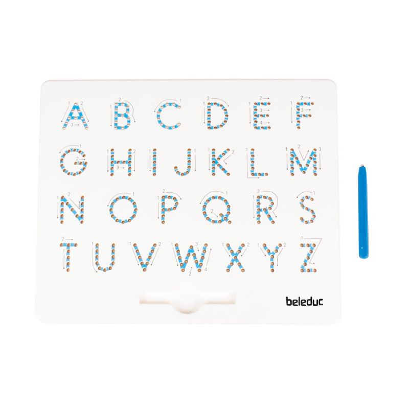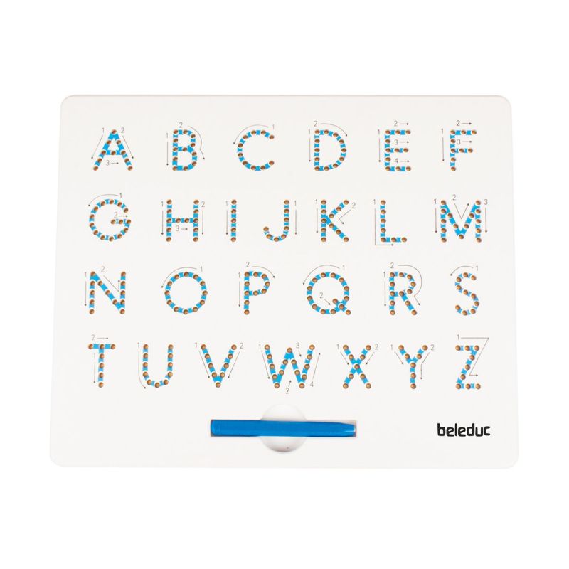 Магнитната писалка в комплекта реагира с топчетата по дъската и помага на детето да свикне с изписването на буквите.