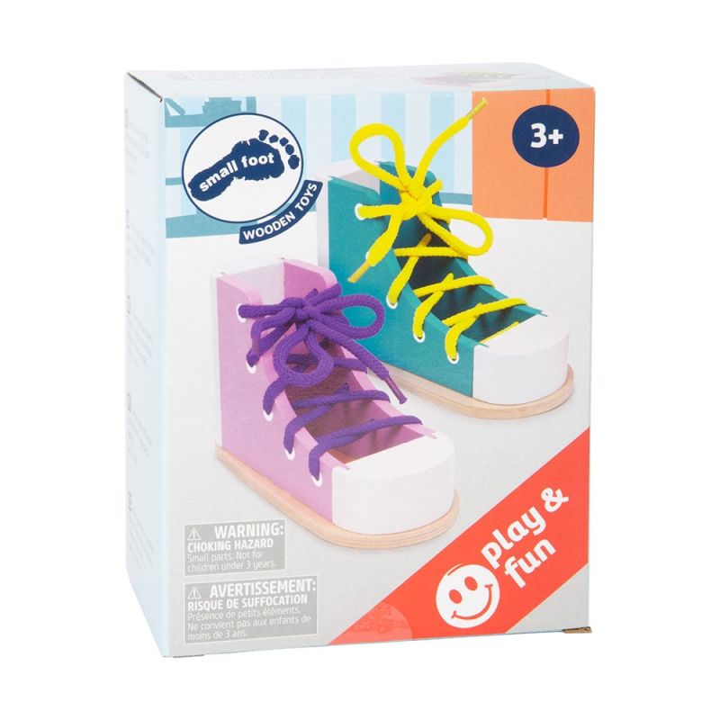 Обувките за нанизване помагат на децата да се научат да връзват обувки. Комплектът тренира търпението и сръчността на децата.