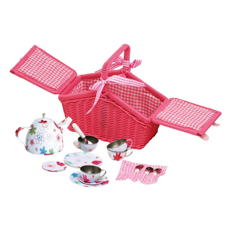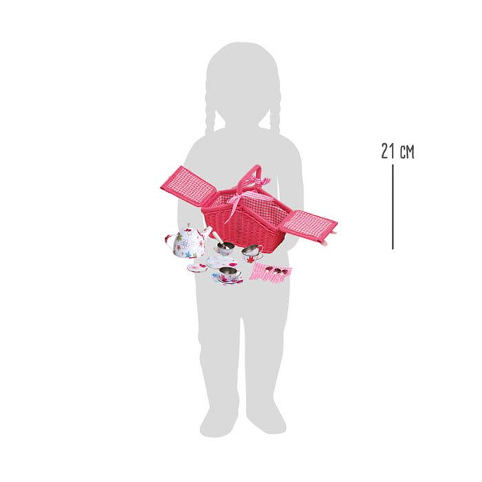 Small Foot Кошница за пикник, с чаен сервиз, розова
