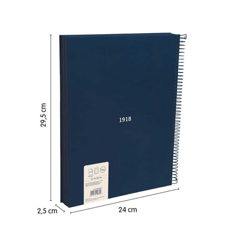 Milan Тетрадка 1918, А4, широки редове, твърда корица, със спирала, 120 листа, тъмносиня