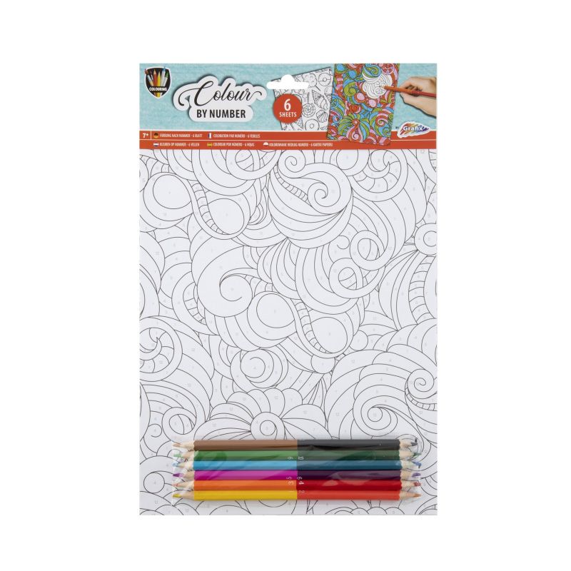 Moxy Рисуване по номера Мандала, А4, с 6 молива, 6 листа
