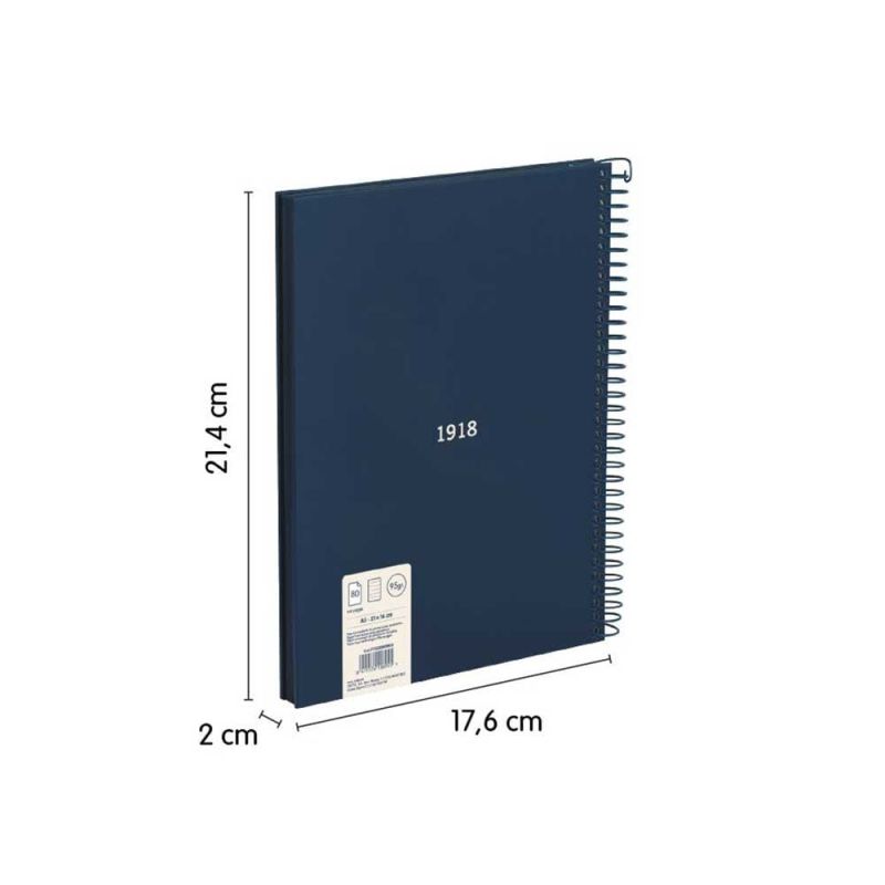 Milan Тетрадка 1918, А5, широки редове, твърда корица, със спирала, 80 листа, тъмносиня