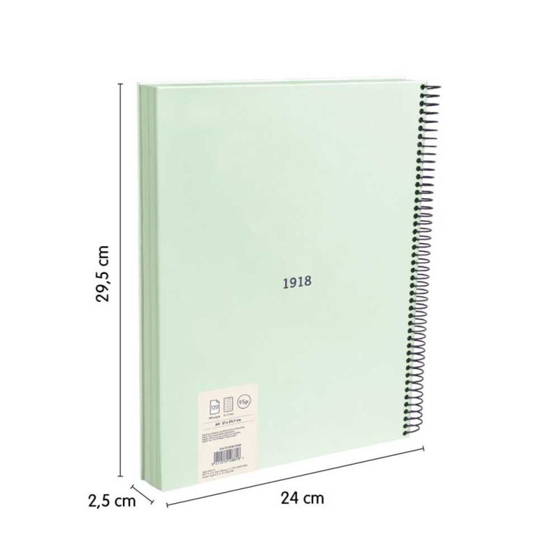 Milan Тетрадка 1918, А4, малки квадратчета, твърда корица, със спирала, 120 листа, зелена