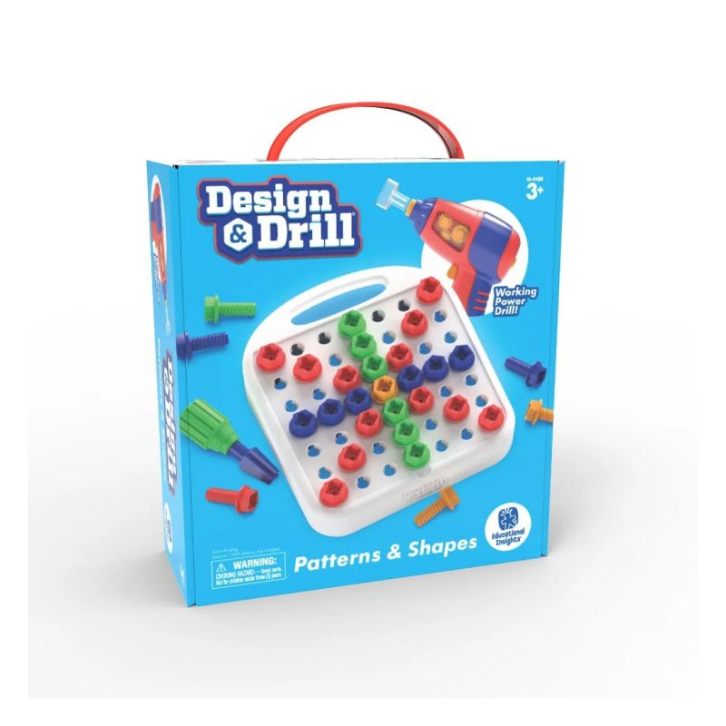 Децата могат да следват шаблоните на включените карти или да използват свредлото и болтовете, за да проектират свои собствени, персонализирани картинки и шаблони.