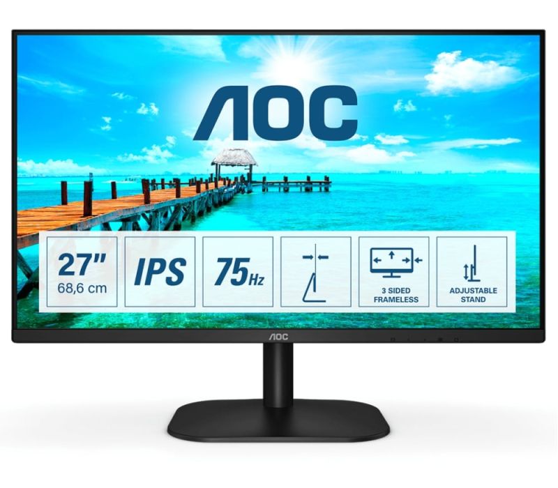 AOC Монитор 27B2DA, 27'', LED, 1920 x 1080, 250 cd/m2, 4 ms, HDMI, VGA, черен