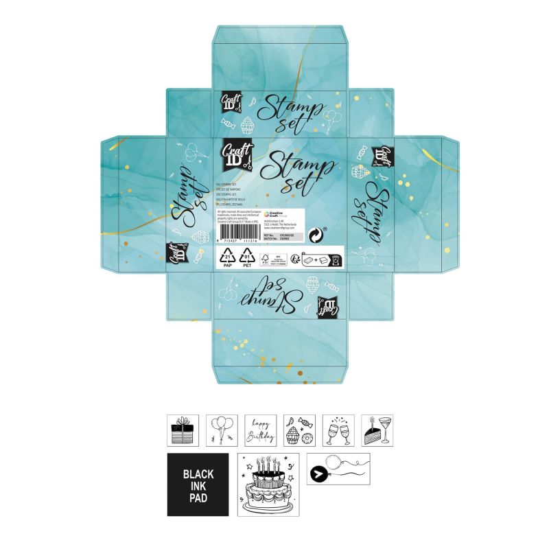Craft ID Комплект печати за рожден ден, с включен тампон, 8 броя