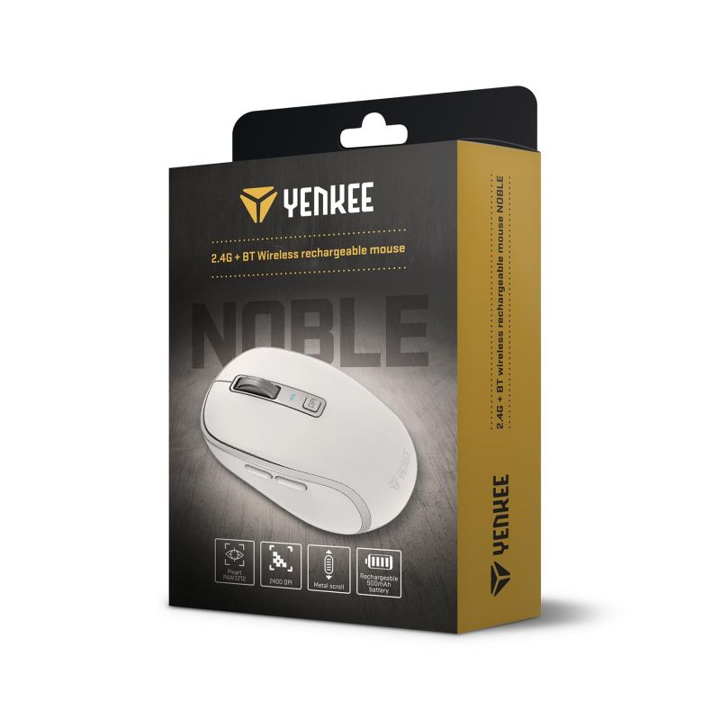Мишка Yenkee YMS 2085WE, безжична, 2400 dpi, USB, 6 бутона, Li-Polymer, бяла