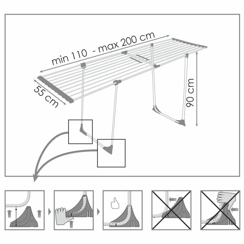 - Телескопични, разтегателни рамене, които увеличават повърхността за сушене до 20 m.
