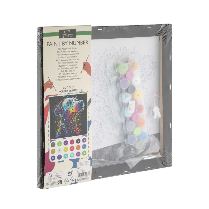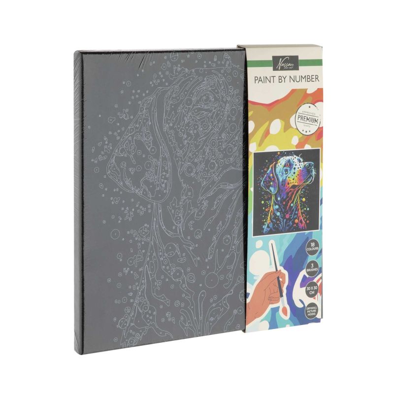 Moxy Комплект рисуване по номера Куче, на черно платно, 30 x 30 cm