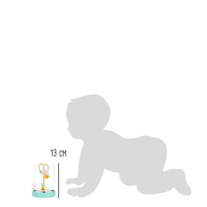 Този лесен за използване лабиринт с мъниста подпомага развитието на фината моторика на малките деца, когато те бутат осемте цветни топчета по двете метални писти.