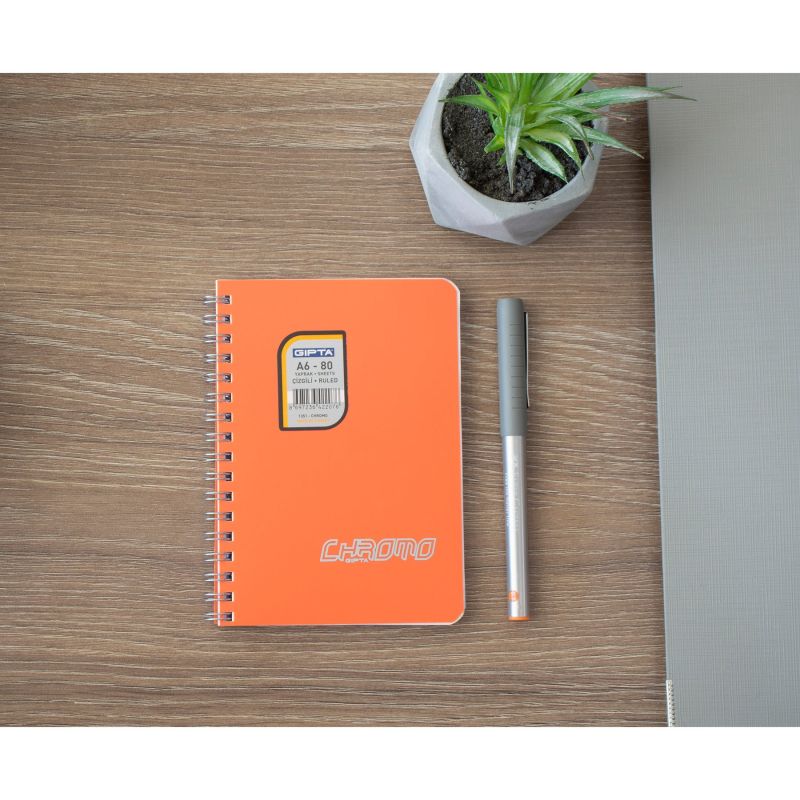 Gipta Chromo Тетрадка А6, бяла, широки редове, PP корица, със спирала, 80 листа