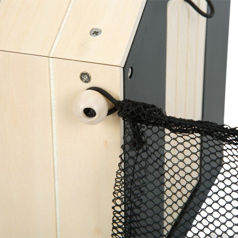 Голямото количество естествен дървен материал, съчетано с повърхностни покрития на черна дъска, върху които може да се пише, правят тази клетка за зайци визуално привличаща вниманието в детската стая!