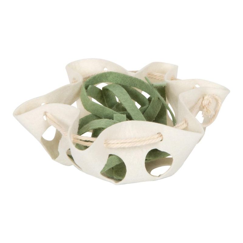 - С морков и мрежа за сено за хранене на плюшеното конче.
