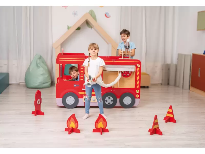 Манипулативният кът за игра „Пожарна“ на Nowa Szkola е специално проектиран да провокира детското въображение и ролеви игри, вдъхновени от смелите пожарникари. Този кът предлага разнообразни елементи и аксесоари, които насърчават развитието на креативност, социални умения и координация.