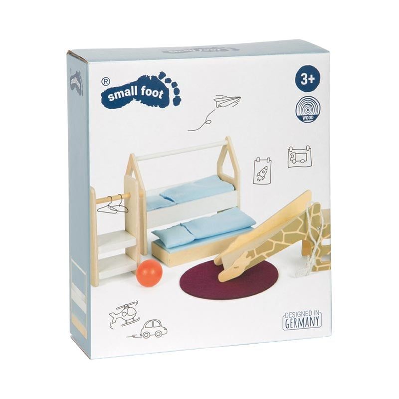 Комплектът мебели за къща за кукли – детска стая от Small Foot е перфектното допълнение към всяка дървена къща за кукли, като осигурява уют и реализъм в миниатюрен мащаб. Създаден с внимание към детайла, този комплект помага на децата да развият въображението си, като пресъздават сцени от ежедневието чрез игра.