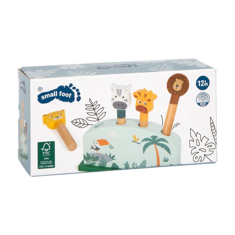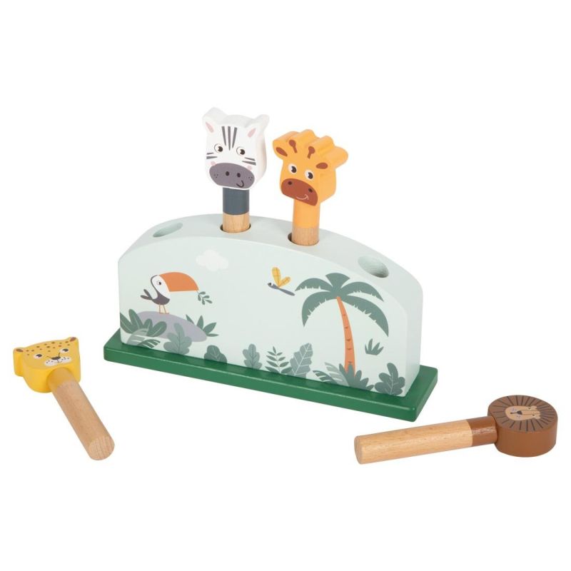 Натисни главите на животните и ги виж как подскачат обратно—очарователна изненада, която възнаграждава любопитството. Тази здрава дървена дъска тренира скоростта на реакциите и прецизните движения на ръцете.
