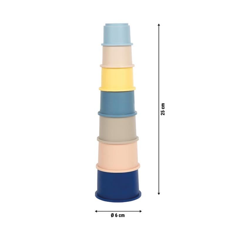 Силиконовите чашки за подреждане са многофункционална играчка за бебета и малки деца, която стимулира както двигателното развитие, така и сетивата. Благодарение на компактния си дизайн, чашките се подреждат една в друга и се съхраняват лесно след игра.